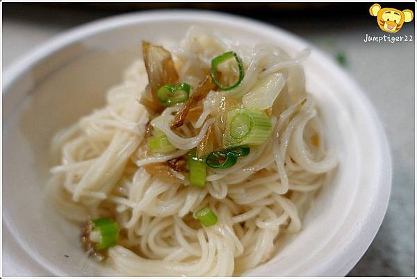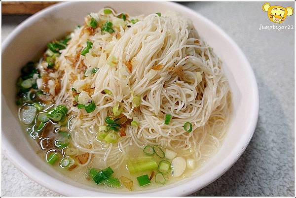 ▼ 麵線下層的雞油湯汁閃耀著光芒,雞油香氣隨著麵線的攪拌散出香氣,油蔥與蔥花提味的不多不少剛剛好!