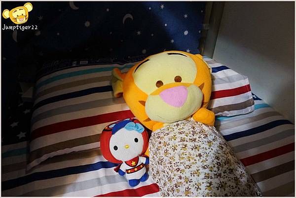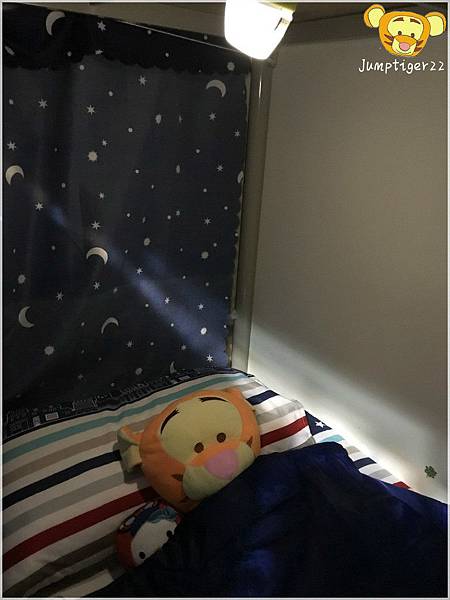 ▼ 跳虎和黏黏躺比誰都快,每床上頭都有個小夜燈我覺得這個也很棒,開燈不擾他人夢![]()