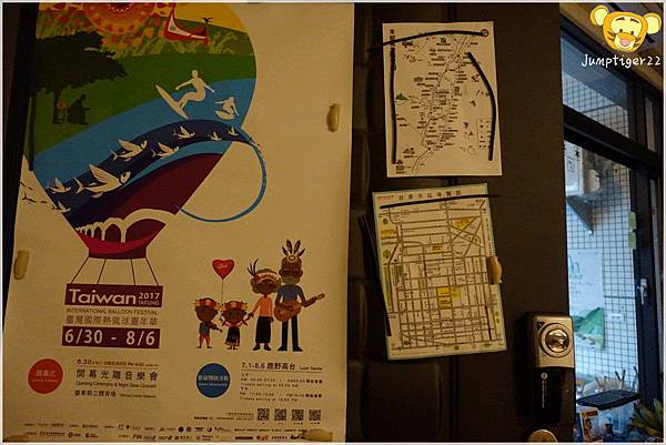 因為最近是臺灣國際熱氣球嘉年華,大門背後就貼宣傳和日程海報,還有台東美食、景點地圖!