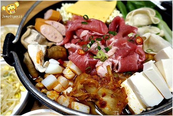 想吃韓式料理又怕太辣,內心滿滿慾望點辣醬鍋,最後還是折衷點了部隊鍋。