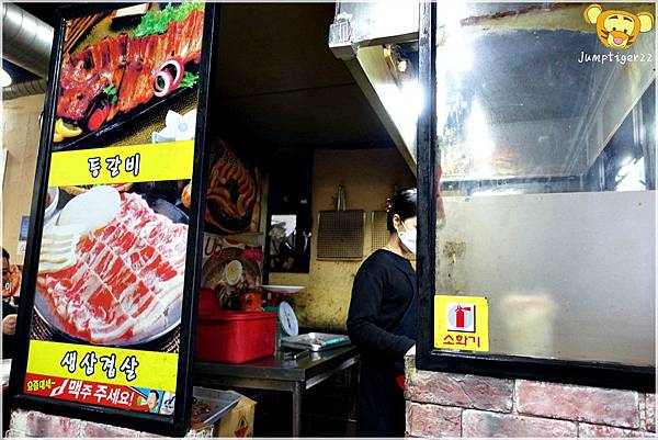 我們的座位旁就是豬肋排小廚房,雖然很想問可以進去拍嗎,但是我只會講撒拉黑唷這種等級的韓語所以還是不要好了XD