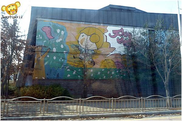 起床時車子剛好到了Heyri藝術村,因為行程規劃的關係,所以我們沒有要逛藝術村,但是這外觀有點可愛![]()