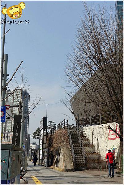 ▼ 後面那個樓梯,就是我們前一晚逛完弘大超累的了還硬要再去HOMEPLUS超市大買零食的小路!