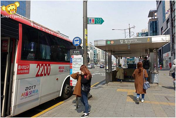 英語村的前往方式我們是先搭乘地鐵到合井站1號出口,出來就可以看到2200號的公車站牌,