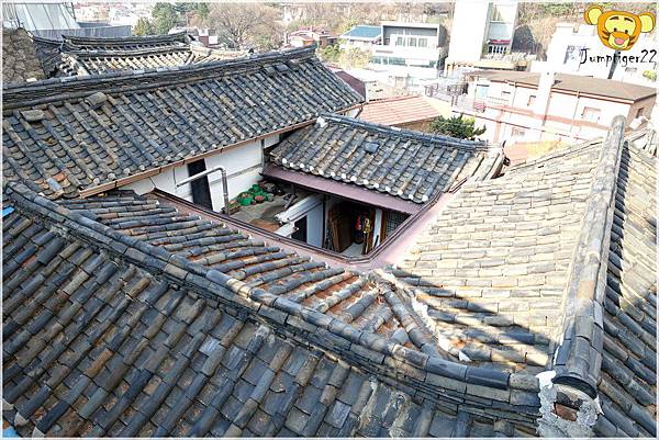 ▼ 爬得再高一點,可以看到韓屋村內在的一點樣貌,有點像是我們的四合院,不過還挑高成了兩層樓。