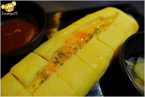 單吃就會吃到滿滿蛋香與起司味兒,如果要沾醬,就是沾番茄醬囉~