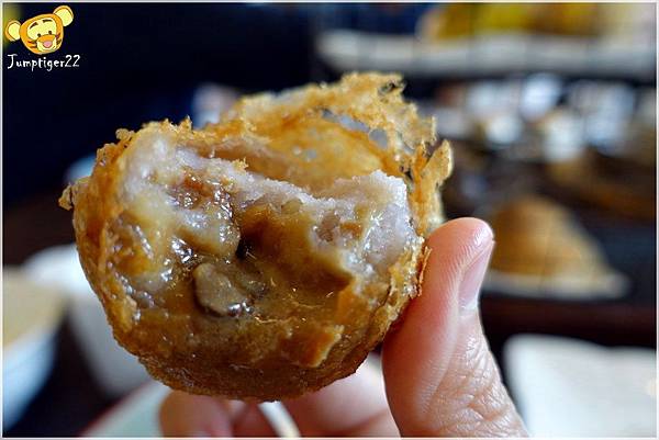 裏頭包覆著芋泥,綿密細緻的口感,由外層白芝麻香氣來提味,很棒的一道餐點啊![]()