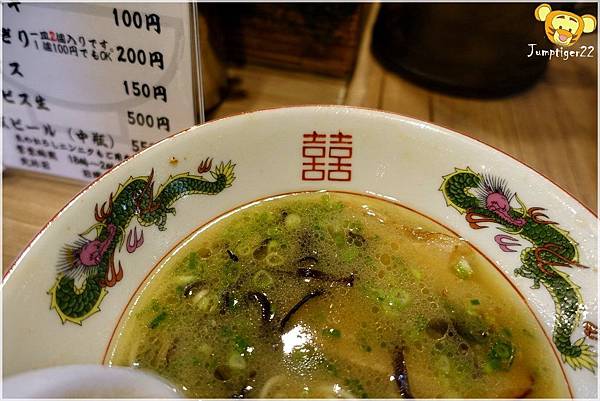 站在外頭排隊的時間,一直數著還要進去多少人才會輪到我(我們排在第22人左右),還好日本人吃拉麵的速度真的很快,約莫30分鐘就輪到我們進去用餐了!