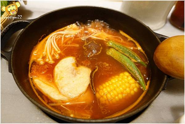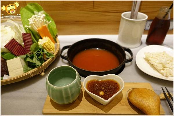 煮火鍋最喜歡先把蔬食丟下去滾,蕃茄湯頭一點也不酸,而且加上蔬食的鮮甜讓人覺得順口好喝。