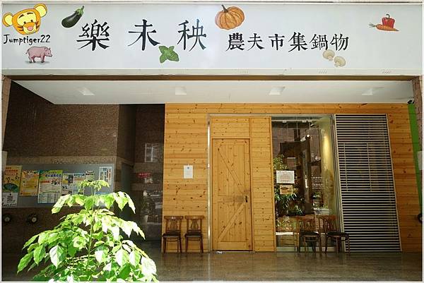 ▼ 樂未秧的招牌用蔬果和動物當點綴,入口是那木門,不知道有沒有人像我一樣誤把玻璃窗當門口的XD