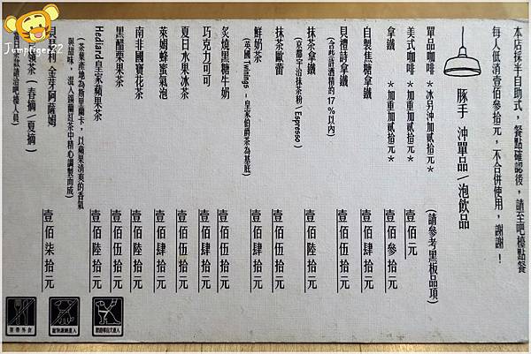 一個約莫A4大的板子就是menu,飲品就佔去一整面,所以說來這裡喝下午茶非常合適!