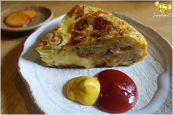 ▼ 跳虎說西班牙蛋餅好吃,沾上番茄醬/蜂蜜芥末醬也好吃!