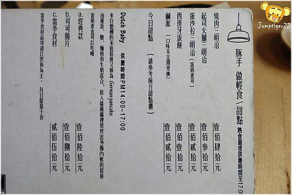輕食甜點的部分,心中打定就是要來個鑄鐵鬆餅的,就在此時才發現鬆餅供應時間的下午兩點才開始啊啊啊