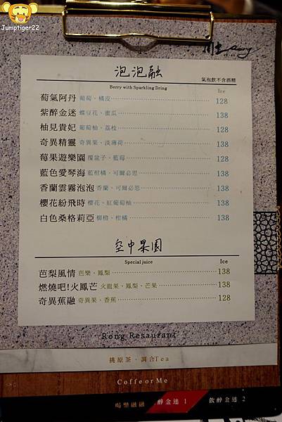 融餐廳的飲品單是另外一冊,有調酒/茶類/咖啡/啤酒,選擇真的蠻多的,很可以喝點什麼搭配這美好的夜景。