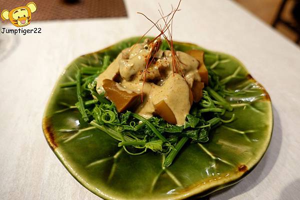 特殊的花蜜和醬汁混和,鹹中帶著淡淡甜甜的滋味,真的是非常下飯的一道菜。