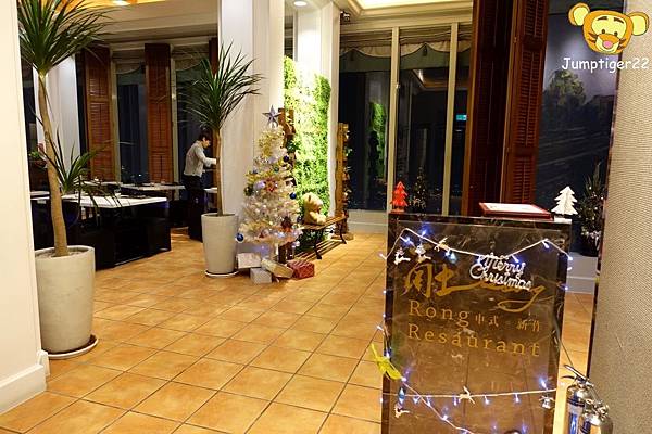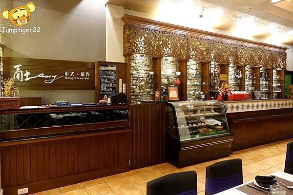 ▼ 深咖啡色系的融Rong餐廳就在電梯左手邊。