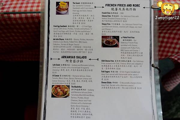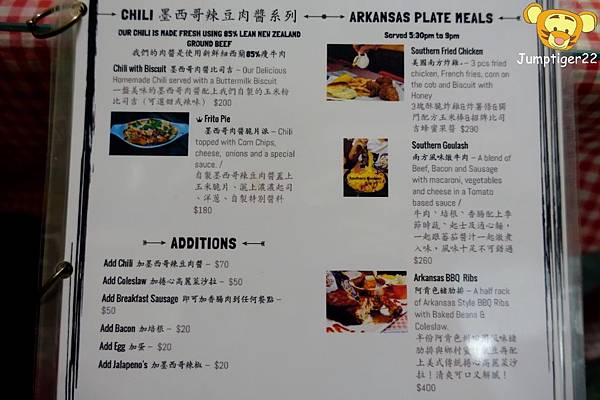 Arkansas的菜單,除了附上照片外,每項餐點都詳細地列出內容物,不怕吃到不愛吃的食物,就怕每個都是你愛吃!