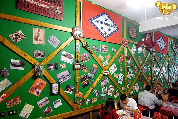 一踏入Arkansas阿肯瑟店裡,高高的木板吧檯,小小的座位,容納著五桌客人,這種各種收藏小物的餐廳風格很美式風無誤!