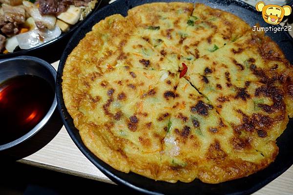 整體偏濕軟一點,海鮮塊們蠻多的,煎餅當然要沾醬提味才夠鮮甜好吃!