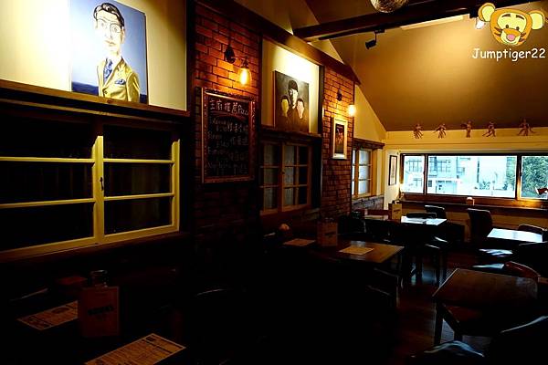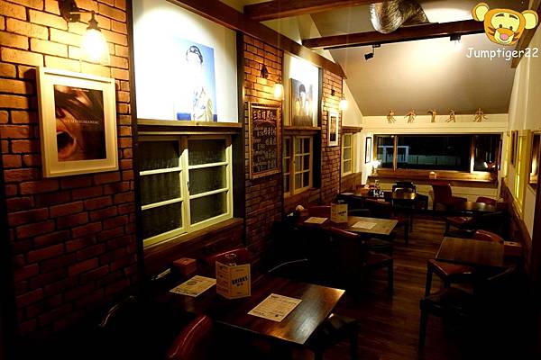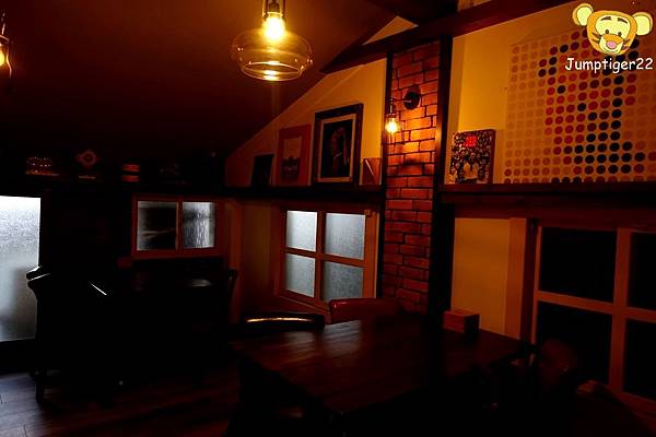 二樓微黃的燈光,深色系餐椅和白牆上掛著各種意境的像框,店裡環繞著輕快舒適的英文歌曲讓人整個都放鬆了起來。