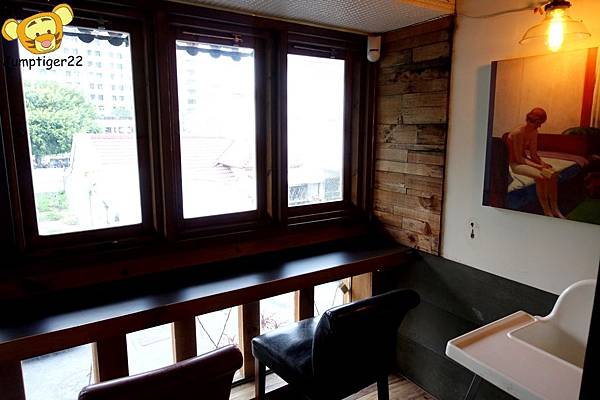 再往後一點點有一區只有兩組座位的小閣樓,心想平日應該不會人滿到這裡來,所以就挑中這裡有一種兩人就變成包廂的感覺XD