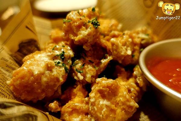如果覺得酥炸又是帕瑪森整個很膩口的話可以沾點番茄醬(瑪麗那拉番茄醬),變成帶點酸甜讓口味又清爽了起來!