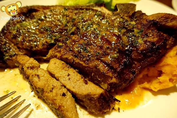 火烤的火侯得宜,讓整個豬排肉質不乾不柴還帶有點嫩度與咬勁,16oz這樣吃下來一點也不嫌多啊!