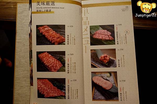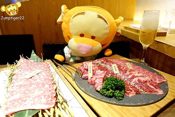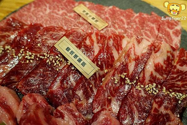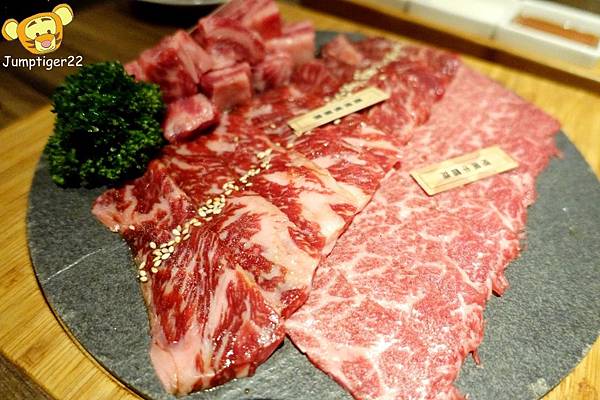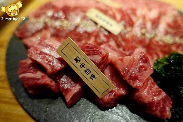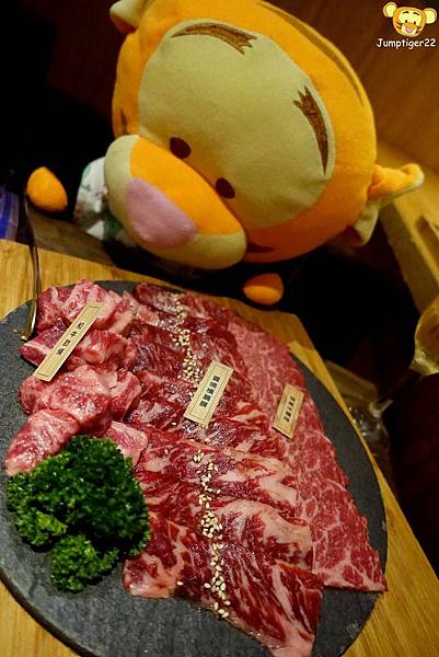 套餐中的三種肉都放在同一盤(和牛醬燒橫隔膜/和牛肋條/極黑牛霜降),而且在每種肉上放上標示,更快更清楚知道自己吃什麼!