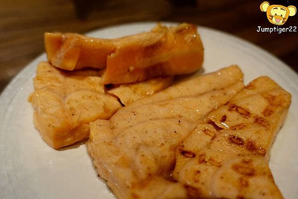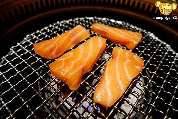 ▼ 怕一失手成千古焦,所以烤盤就只烤這鮭魚!