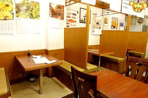 整個店裡非常日式風格,從桌椅到牆面裝潢都是木質色系,連側邊有屏風擋板的座位椅子上還是那種是日式榻榻米坐墊~