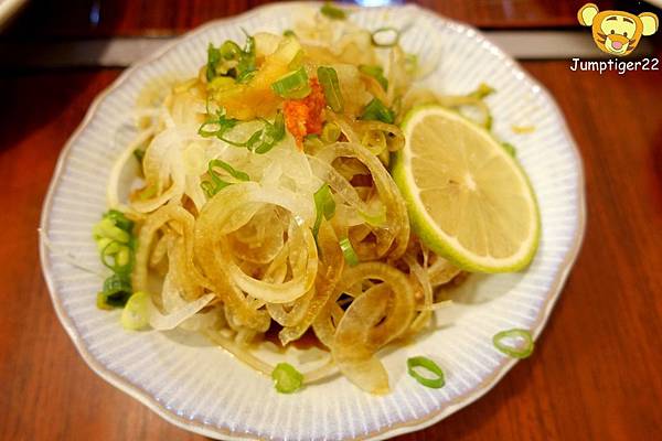 惠美壽亭的處理方式是洋蔥涼拌,需要的話可以淋上檸檬片,但我不想要這麼酸~
