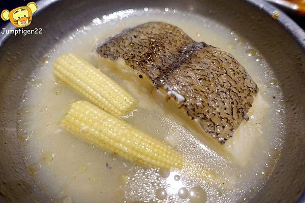 鱈魚肉質很不錯,雞湯的湯頭和海鮮融合烤出高湯,再用這高湯煮一下玉米筍,超解膩,這湯頭超讚超好喝!