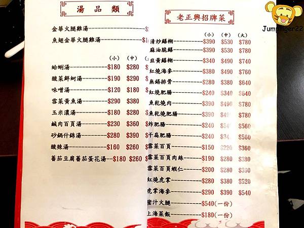 ▼ 老正興可樂哥的菜單,餐點還是以江浙菜為主