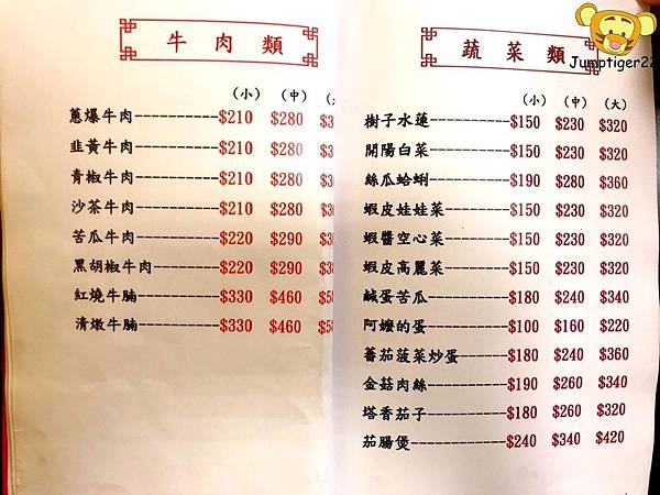 牛肉類蔬菜類,各項餐點都可以依照用餐人數量來選大中小份,像我們四人用餐,都是點小份而已唷~