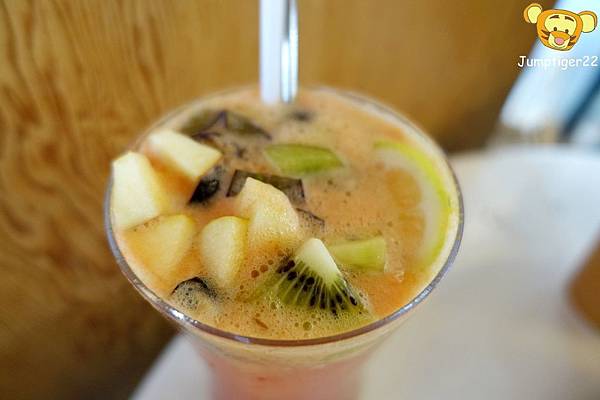 超多種水果切丁混合,水果們本身各自帶酸帶甜釋放於其中,讓整杯飲料喝起來就是酸甜參半的感覺