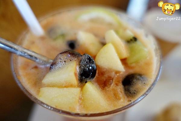 ▼ 料多到要用湯匙才能撈出水果們~