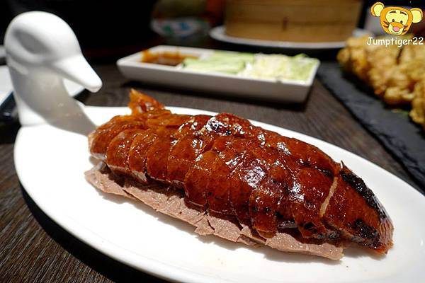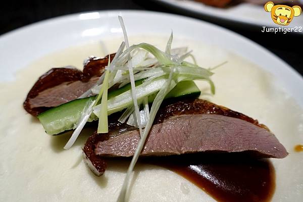 餅皮很薄很有彈性,鴨肉嫩又多汁且香,不過我對甜麵醬的味道有點疑惑,這和我愛的鹹甜烤鴨醬不太一樣