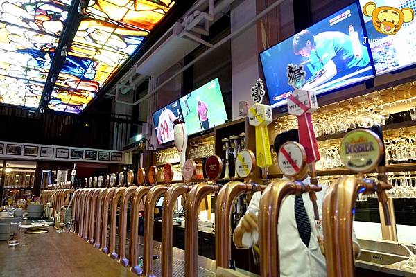 從這角度拍到啤酒柱與上頭額外掛上的七彩玻璃光設計,氛圍實在超讚啊