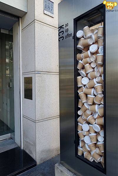 ▼ 店門口設計整櫃的外帶紙杯,蠻可愛的,下次可以改成自動販賣機設計XD