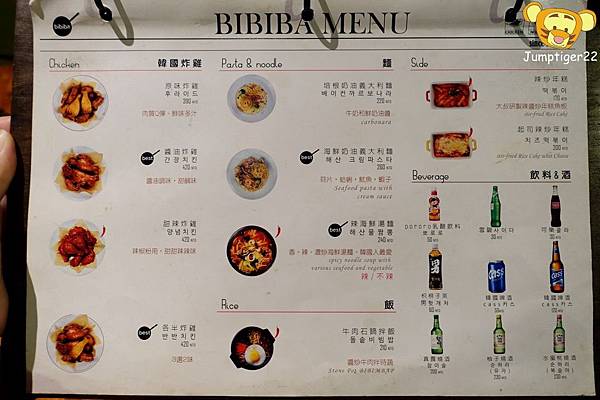 BIBIBA原本主打豬肋排和韓式烤雞(炸雞),不過第二次用餐時發先菜單有改!!!