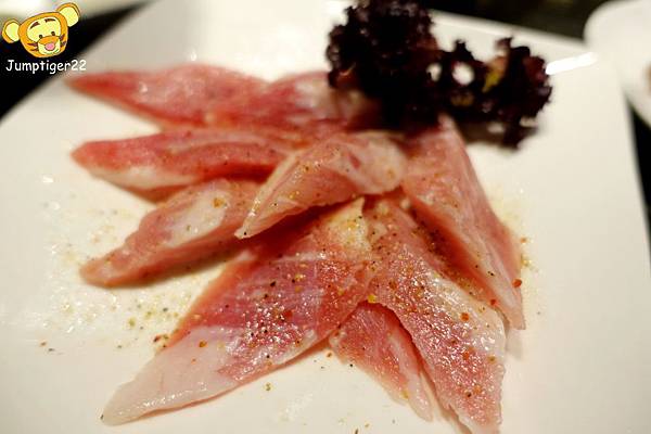扇子肉的脆度也不輸給黃金六兩松阪豬,但又多了那麼點軟嫩在其中,這可以說是黯然銷魂伊比利吧!