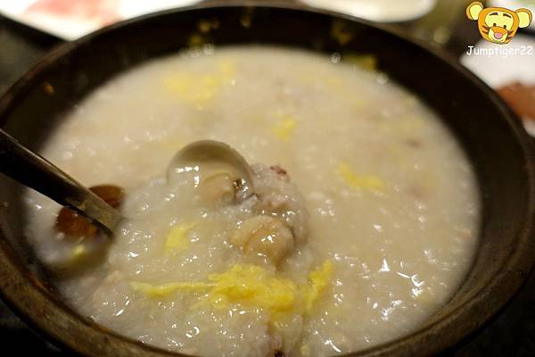 裡頭會有蛋絲、蛤蜊和小花枝等小海鮮,重點是這整個粥感覺就是海鮮湯汁熬煮的啊超級鮮美!