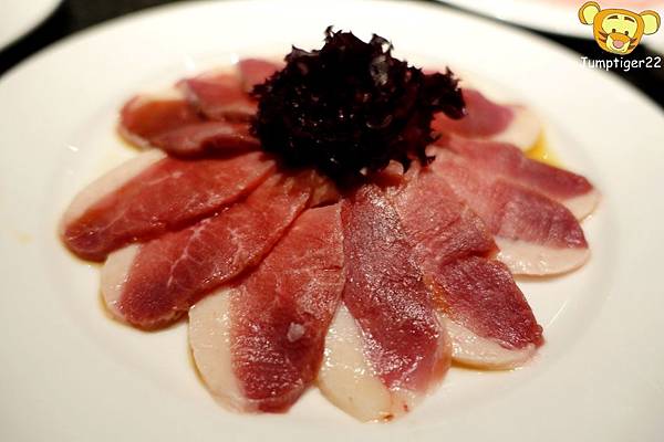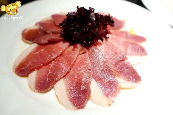 扇子肉聽說堪稱伊比利豬的腹部精華部位,如扇狀分布的油花,連擺盤都配合出個扇形哈哈