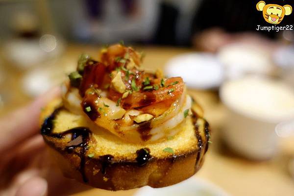 酥香的麵包底本來和橄欖油和巴沙米克醋就是很好的搭擋,加上海鮮的蝦甜實在好好味吶~