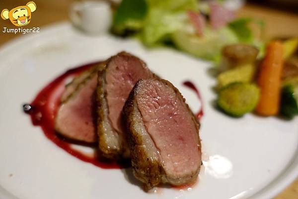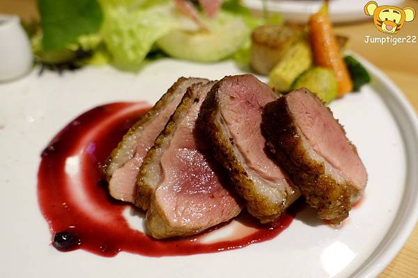 再來是我本來想點的鴨胸,尼抗抗這粉嫩又帶皮的外表讓我超想犯罪(搶友人的食物會被警察杯杯抓嗎><)