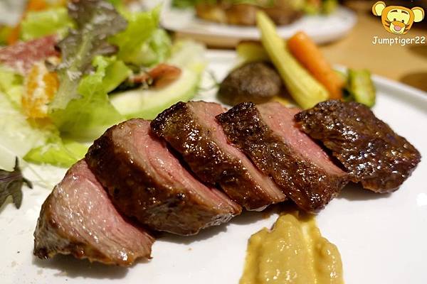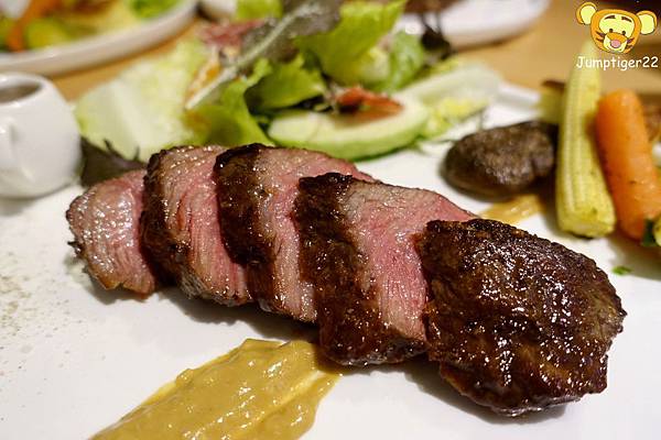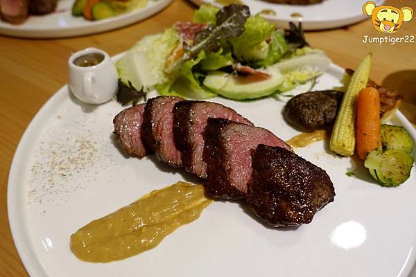 帶著山葵微嗆卻讓人感到舒暢的濃郁醬料,和牛排產生一種奇妙的火花阿