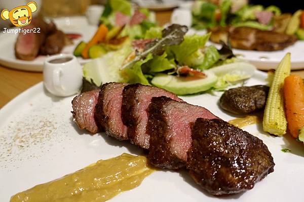 壽星的的牛排,擺盤也是很講究,而且切面露出粉嫩肉色就是誘人!