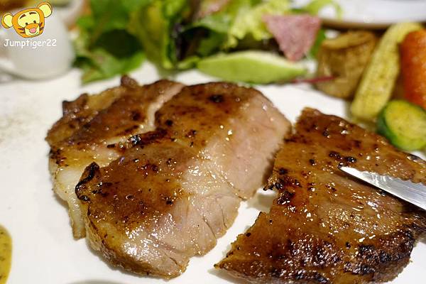 先看看這噶瑪蘭黑豚跟焦糖完美香煎後的色澤,而且還透出光澤閃到我眼睛差點睜不開!