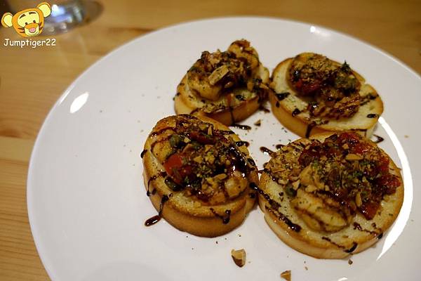 剛剛的冬筍餅是以個數計算,但是像普切塔一份就是四個唷,五人來吃可能就要猜拳了(不然再點一份也是不錯的建議因為像我就可以吃兩個XD)