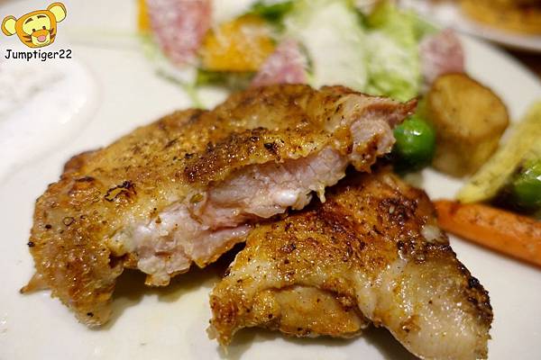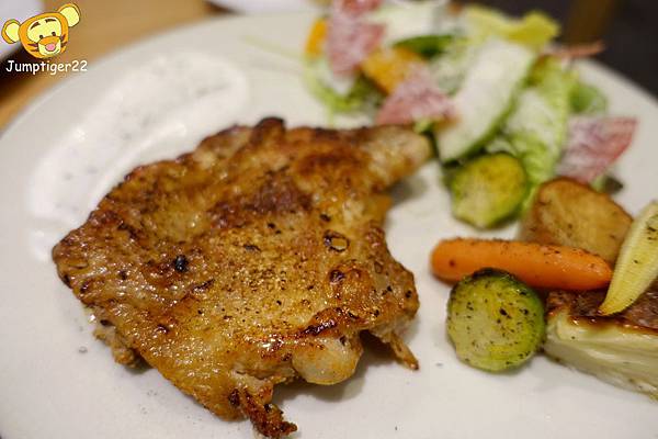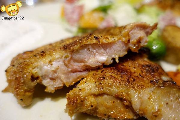 來看看雞腿排,這慢烤到金黃的外表,一咬開完全是鮮嫩多汁的代表,皮還帶點酥酥脆脆的豪吃!